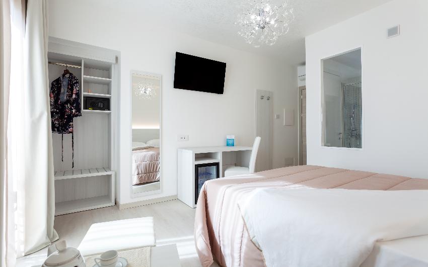 The Comfort rooms can be double or with 2 single beds, they are available on the upper floor and are equipped with a small balcony and have a surface area that can vary from 15 to 17 m2. Cot on request for a fee.